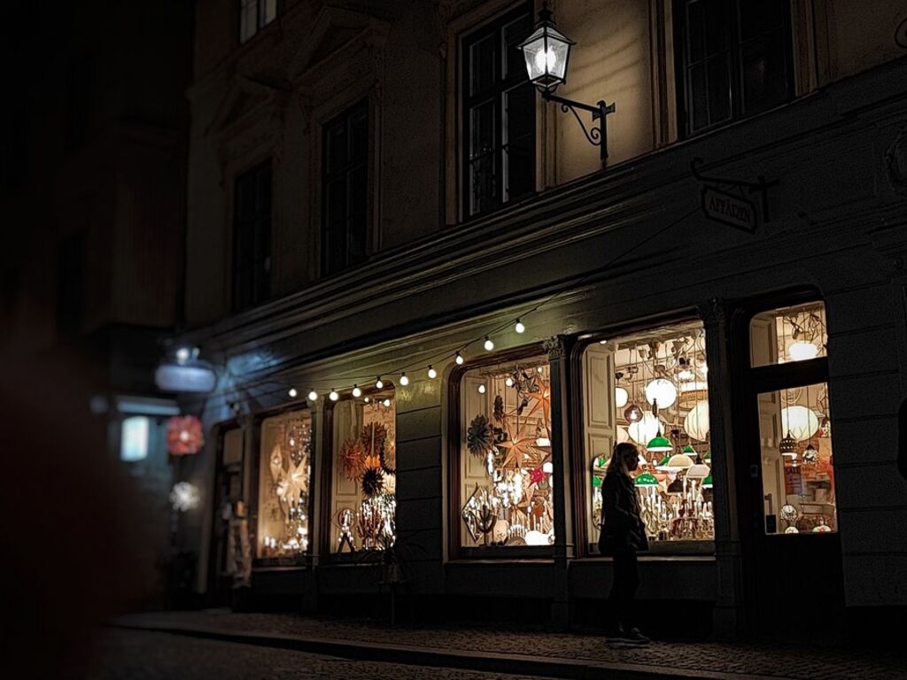 | Une femme devant un magasin de lampes dans la capitale suédoise Stockholm, le 28 octobre. |