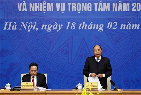 | Le Premier ministre Nguyên Xuân Phuc s'exprime lors de l'événement, le 18 février à Hanoï. |