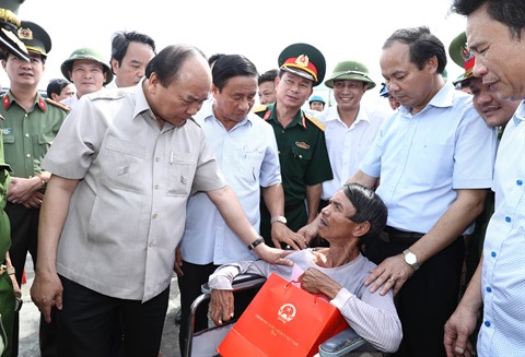 | Le Premier ministre Nguyên Xuân Phuc rencontre les populations sinistrées dans le chef-lieu de Ky Anh, province centrale de Hà Tinh. |