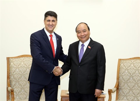 | Le Premier ministre Nguyen Xuân Phuc (droite) et Calin Dragan, directeur régional des embouteilleurs de l’ASEAN et du Moyen-Orient de Bottling Investments Group. |