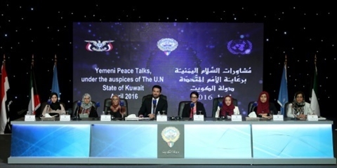 | Conférence de presse des représentants de la société civile du Yémen et de l'ONU, après des négociations de paix sur le Yémen, au Koweit, le 8 mai 2016. |