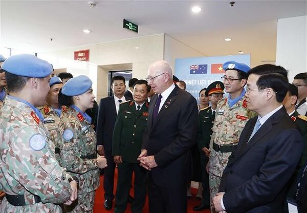 Le chef de l’État vietnamien, Vo Van Thuong, et le gouverneur général d'Australie, David Hurley, se sont aussi rendus au Département des opérations de maintien de la paix du Vietnam.