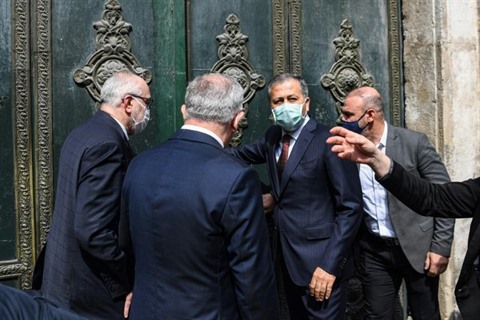 | Le gouverneur d'Istanbul, Ali Yerlikaya (de face), est venu en personne ouvrir solenellement la porte du Grand Bazar, le 1er juin, après des semaines de fermeture due au coronavirus. |