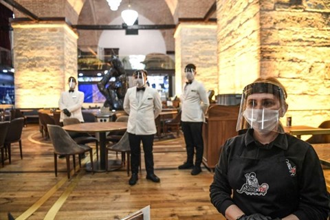 Près de la place Taksim dans le centre d'Istanbul, le gérant d'un café a trouvé une ingénieuse parade pour respecter la distanciation sociale sans montrer que la moité des tables sont vides : Il y a installé en guise de clients des mannequins habillés, les bras placés dans une position donnant l'impression qu'ils sont en pleine discussion, selon un correspondant de l'AFP.