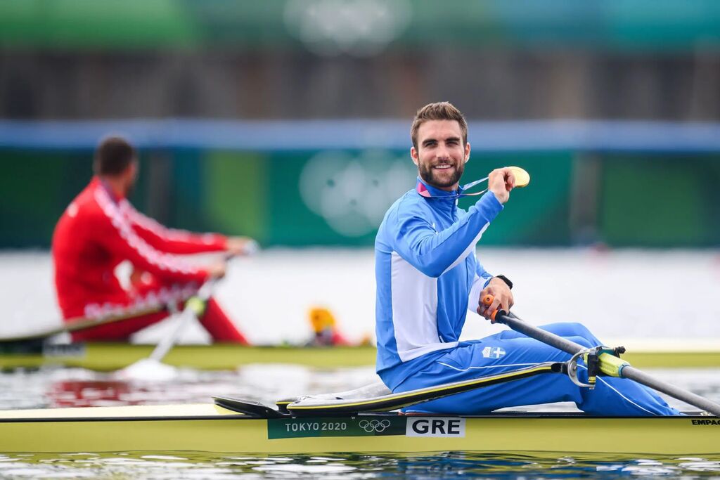 | Stefanos Ntouskos, champion olympique grec d’aviron aux JO de Tokyo 2020. |