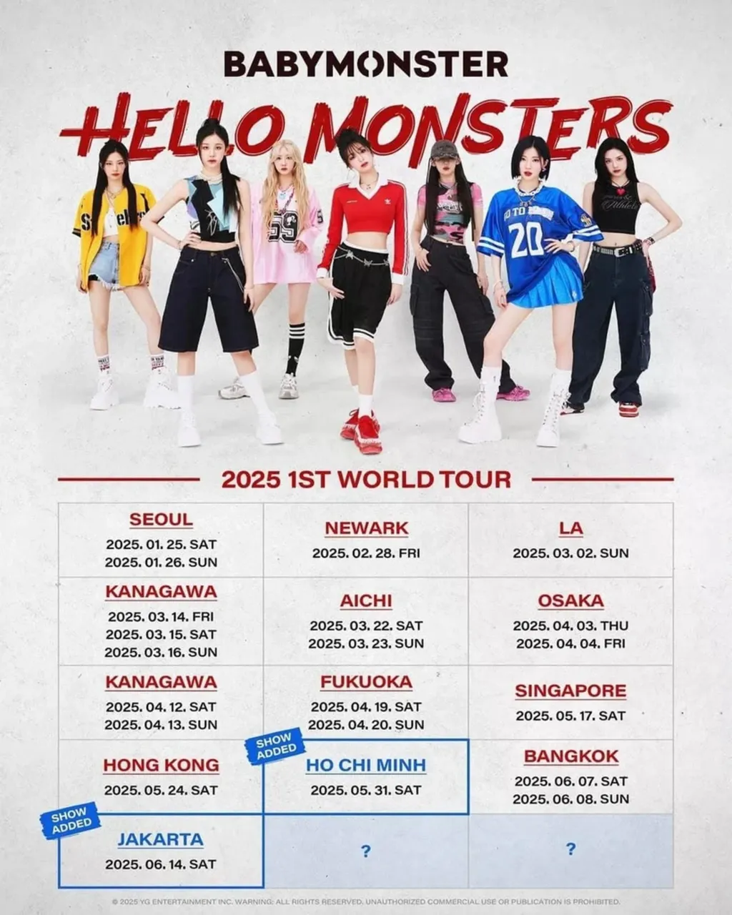 Sur la page officielle du groupe, le Vietnam et l’Indonésie ont été ajoutés comme destinations pour leur première tournée mondiale, après 11 autres villes, dont Kanagawa et Osaka au Japon, Singapour, Hong Kong (Chine) et Bangkok en Thaïlande.