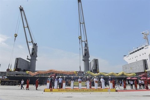 | Cérémonie d'exportation d'une cargaison de 15.000 tonnes de tôle du groupe Hoa Sen à destination du Mexique. |
