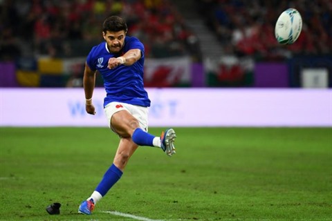 | Le demi d'ouverture du XV de France, Romain Ntamack, lors du quart de finale du Mondial face au pays de Galles, à Oita, au mois d’octobre 2019. |