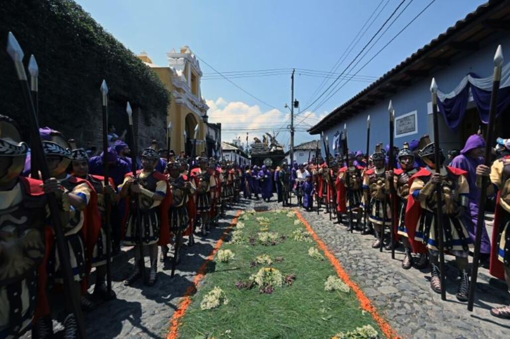 Dans les rues d'Antigua, ville touristique à 40 km au sud-ouest de la capitale, la procession de Jésus de l'Humilité est l'occasion d'une reconstitution de la Passion du Christ (l’ensemble des événements qui ont précédé et accompagné la mort de Jésus de Nazareth), avec des fidèles habillés en soldats romains.