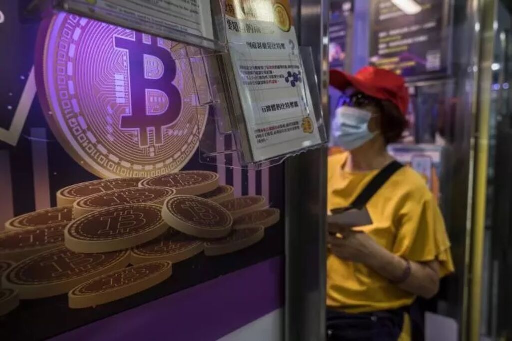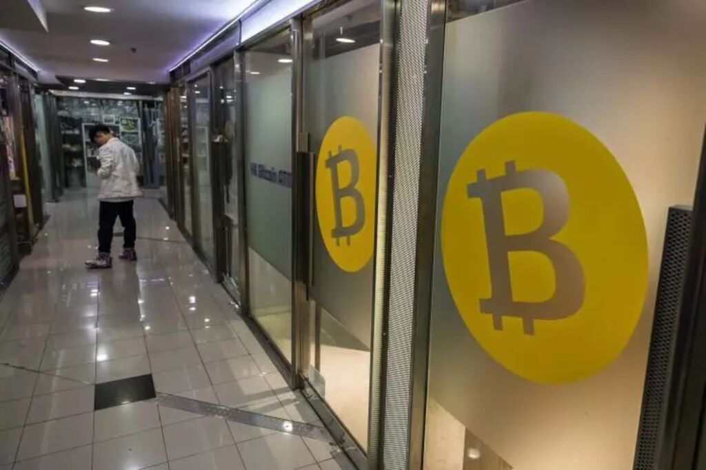 | Lieu d'échange de cryptomonnaie à Hong Kong (Chine), le 15 avril. |
