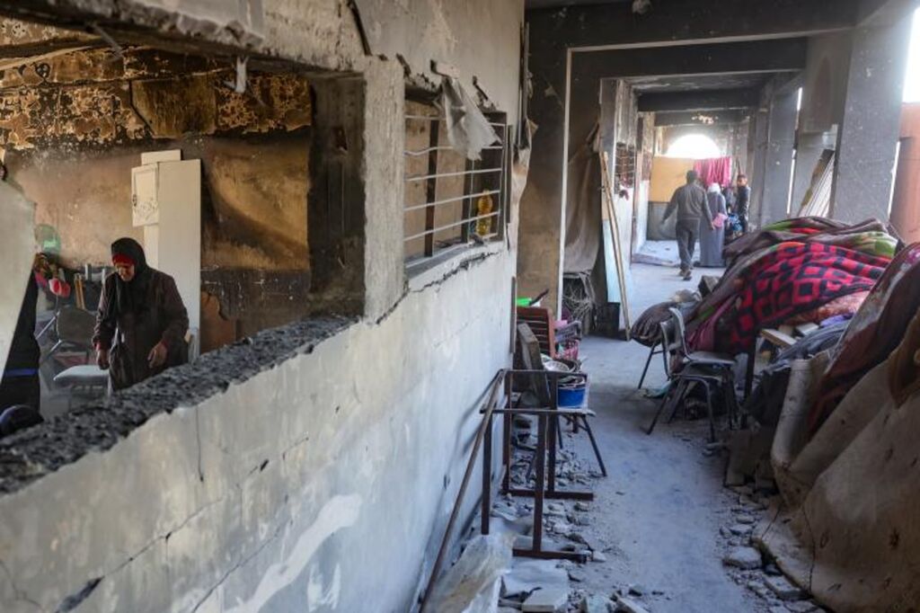 | Des Palestiniens dans une école abritant des déplacés frappée par un bombardement israélien, dans la ville de Gaza, le 13 avril. |