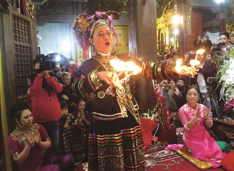 | Une troupe d’artistes vietnamiens est venue en 2014 à Gannat en France pour présenter le rituel hâu dông dans le cadre des activités de l’Année France-Vietnam |