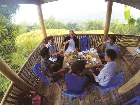 | Prendre le repas avec les locaux est une expérience appréciable pour les touristes séjournant chez l’habitant à Hoàng Su Phi. Photo : CRED/CVN. |