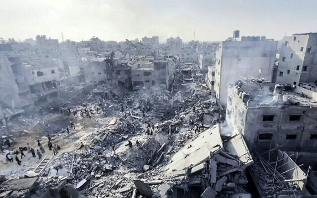 | Destructions suite à une frappe israélienne sur le camp de réfugiés de Jabalia, dans la bande de Gaza, le 1er novembre 2023. |