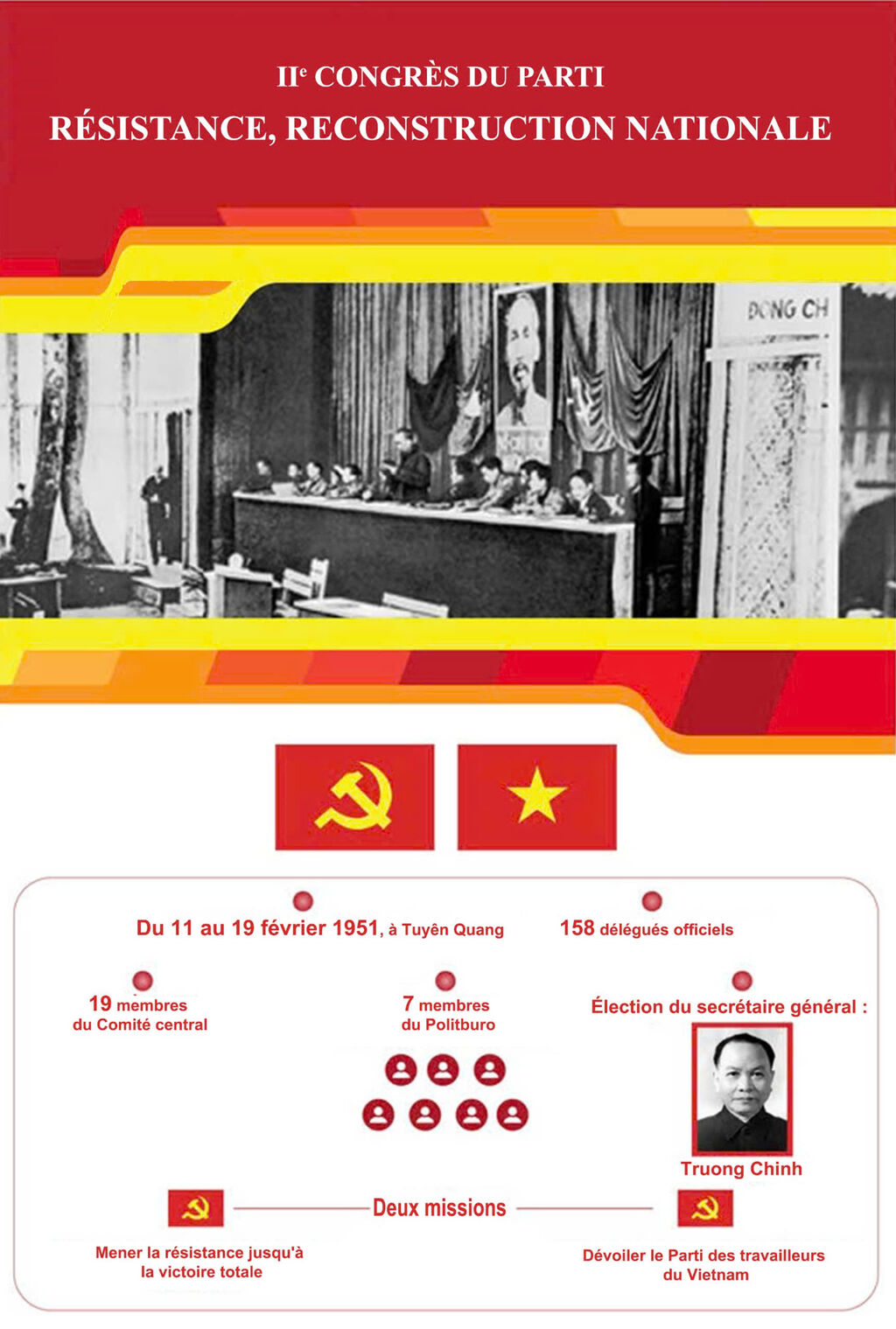 Le IIe Congrès national du Parti communiste de l’Indochine a été convoqué afin de répondre à ces exigences pressantes. Il s'est réuni dans la commune de Vinh Quang, district de Chiêm Hóa, province de Tuyên Quang (Nord), du 11 au 19 février 1951. Y ont participé 158 délégués officiels et 53 délégués suppléants, représentant les 766.349 membres des organisations du Parti dans toute l'Indochine. Des délégués des Partis communistes chinois et siamois (Thaïlande) étaient également présents.