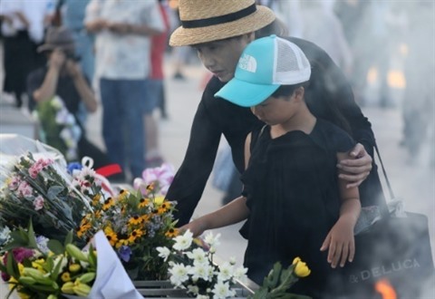 | Hommage aux victimes du bombardement atomique à Hiroshima, au Japon, le 6 août 2017. |