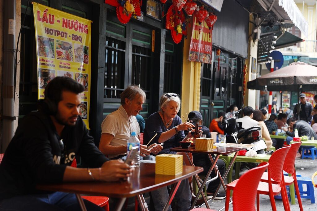 | Des touristes étrangers aiment découvir la cuisine vietnamienne à Hanoï. |