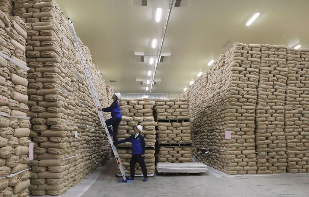 | Le riz est stocké dans un entrepôt dans la préfecture japonaise de Fukushima. |
