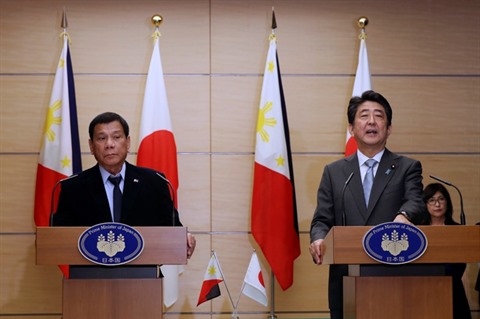 | Le Premier ministre japonais Shinzo Abe (droite) et le président philippin Rodrigo Duterte |