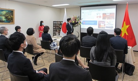 | La cérémonie pour faire le bilan du programme d’assistance d’une partie des frais de scolarité en faveur des étudiants vietnamiens affectés par la pandémie COVID-19 au Japon. |