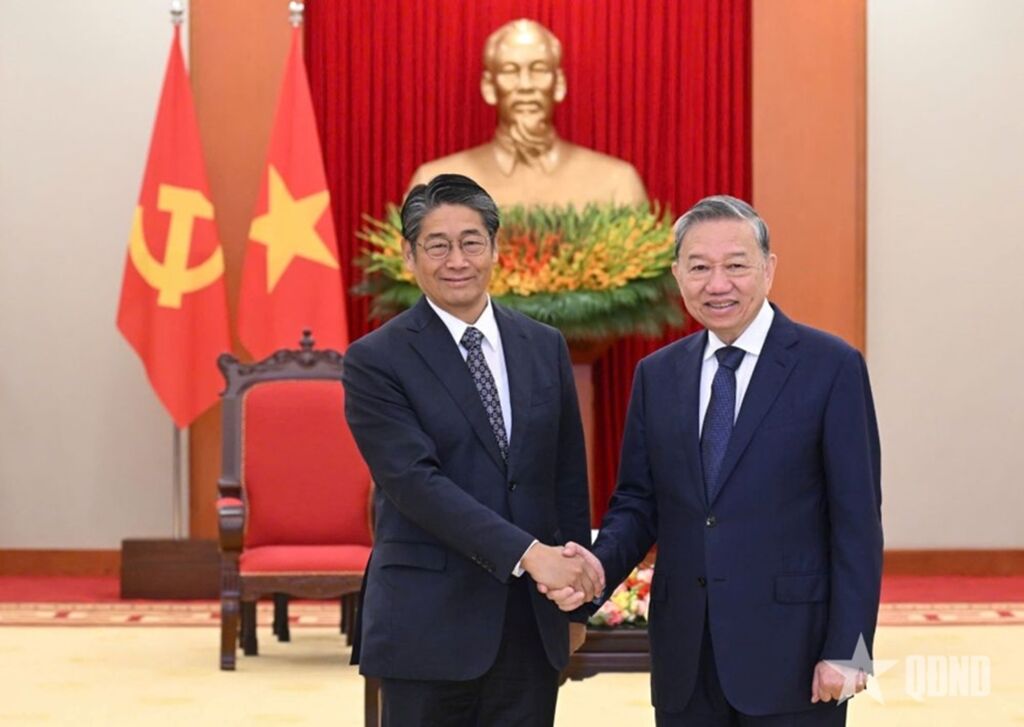 | Le secrétaire général du Parti, Tô Lâm (droite), reçoit jeudi 3 avril à Hanoï l'ambassadeur du Japon au Vietnam, Ito Naoki. |