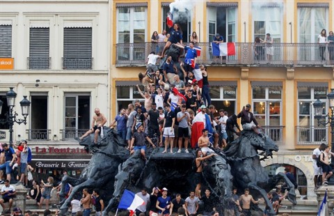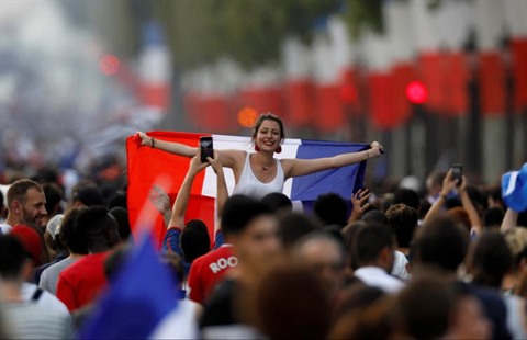 | Une marée humaine sur les Champs-Élysées à Paris, le 15 juillet, après la victoire des Bleus. |