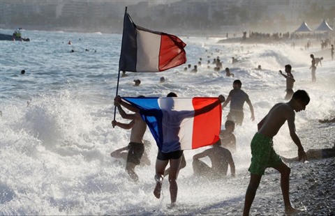 | À Nice, les supporters célèbrent la victoire à la plage. |