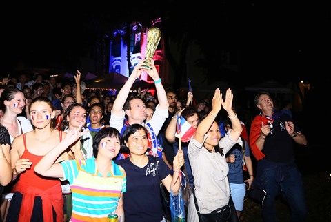 Au Vietnam, l’ambassade de France à Hanoï et le consulat général de France à Hô Chi Minh-Ville ont aussi organisé des projections publiques, ouvertes à tous et gratuites après la fin des phases de poule. Plus de 700 personnes ont assisté à la projection de la finale France - Croatie dans la nuit du 15 juillet à l’ambassade de France à Hanoï en présence de l’ambassadeur Bertrand Lortholary.
