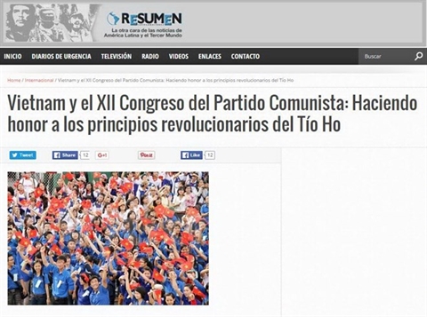 Sous le titre "Le Vietnam et le XIIe Congrès national du Parti communiste : Honorer les principes révolutionnaires de l'Oncle Hô", Carlos Aznárez souligne dans son article que le Vietnam vit ces jours-ci un événement important qui marquera son histoire.