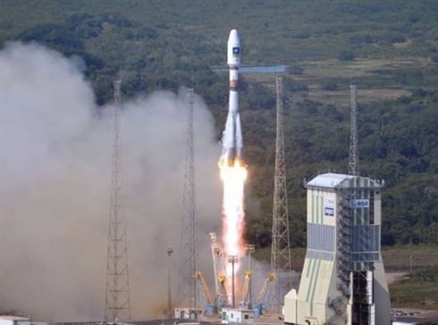 | Photo de l'Agence spatiale européenne montrant un précédent lancement de Kourou de la fusée Soyouz, le 12 octobre 2012 |