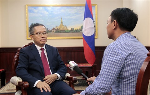 | Le vice-ministre laotien des Affaires étrangères et chef de la SOM ASEAN du Laos, Thongphane Savanphet, lors de l'interview du 26 juin à Vientiane accordée au reporter de l'Agence Vietnamienne d'Information. |