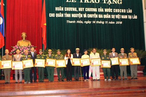 | Cérémonie de remise d'ordres et médailles du Laos aux 130 experts et soldats volontaires natifs de la province de Thanh Hoa, le 14 novembre. |