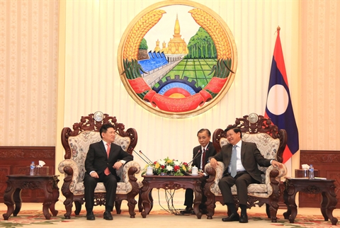 | Le Premier ministre lao Thongloun Sisoulith (droite) et l'auditeur général vietnamien Hô Duc Phoc, le 5 avril à Vientiane. |