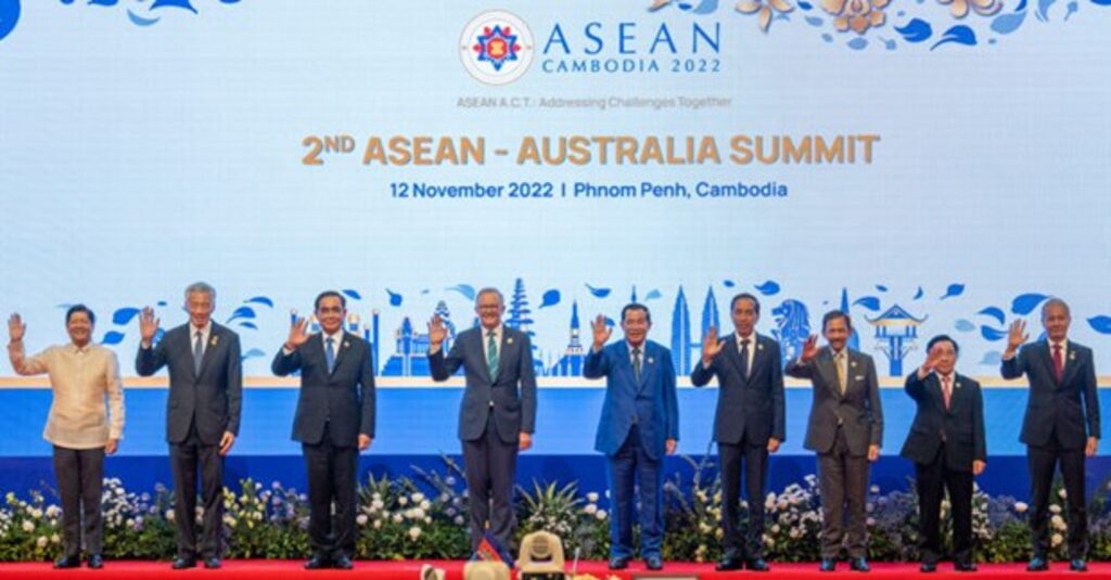 | Le Premier ministre australien Anthony Albanese (4e à gauche) avec les dirigeants de l'ASEAN lors du 2e sommet ASEAN - Australie. |