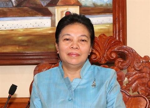 | La présidente de la Commission centrale des relations extérieures du PPRL, Sunthone Xayachac. |