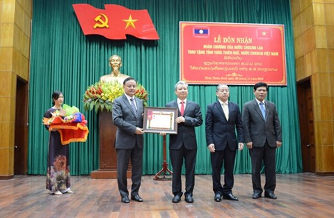 La cérémonie de remise de la distinction honorifique du Laos a eu lieu le 29 novembre dans la ville de Huê, province de Thua Thiên-Huê (Centre), à l’occasion de la célébration des 40 ans de la signature du Traité d'amitié et de coopération Vietnam - Laos et du 55e anniversaire de leurs relations diplomatiques.