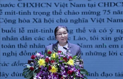 S'adressant à l’événement, la présidente de l’Assemblée nationale laotienne, Pany Yathotou, a rappelé la glorieuse histoire de l’édification nationale et de la défense du peuple vietnamien au cours des 75 dernières années. Elle a noté que sous la direction du Parti communiste du Vietnam, le peuple vietnamien avait surmonté des difficultés et des défis pour obtenir de grandes réalisations dans l’édification et la défense nationales, en particulier au cours des 35 ans de l’œuvre "Dôi moi" (Renouveau). Les succès du Vietnam ont été une source d’encouragement pour les nations qui luttent pour l’indépendance nationale, la démocratie et le progrès social, a-t-elle déclaré.