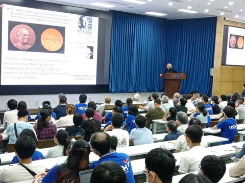 L’amphithéâtre de l'Université des sciences et des technologies de Hanoï (USTH) a fait salle comble mardi 19 juillet. Quelque 400 participants sont venus profiter de la conférence publique intitulée "Matière quantique topologique, intrication et deuxième révolution quantique" (Topological quantum matter, entaglement and the second quantum revolution), animée par le Professeur Duncan Haldane, lauréat du Prix Nobel de physique 2016.