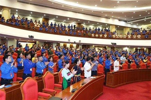 | La rencontre réunit 392 jeunes membres du Parti qui se distinguent dans le mouvement "La jeunesse vietnamienne applique le Testament de l’Once Hô". |