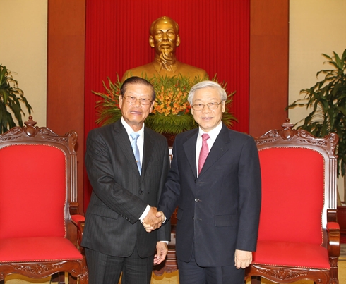 | Le secrétaire général du Parti communiste du Vietnam, Nguyên Phu Trong (droite) a reçu le 27 août à Hanoi le vice-Premier ministre lao Somsavat Lengsavad |