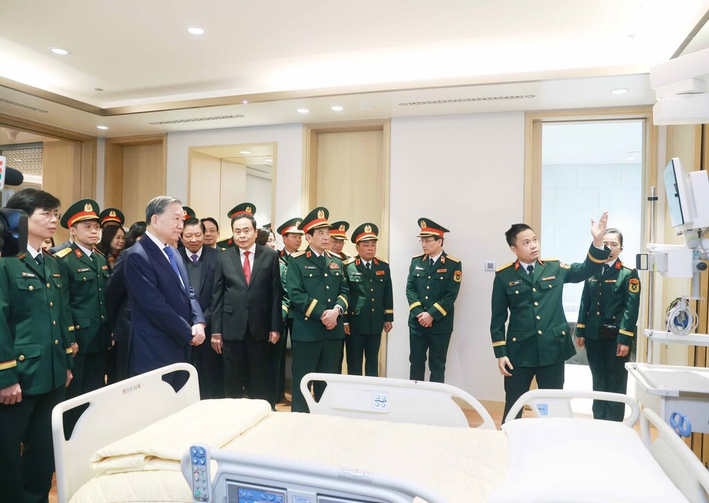 | Le secrétaire général du Parti Tô Lâm visitant deux installations de l’Hôpital central militaire 108 à Hanoi. |