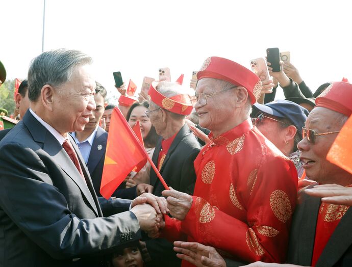 Le même jour, le secrétaire général du Parti Tô Lâm s’est rendu au site des reliques du temple Trân, situé dans le quartier de Lôc Vuong, ville de Nam Dinh, pour y offrir de l’encens en hommage aux rois Trân. Il a également rendu hommage à l’ancien secrétaire général du Parti Truong Chinh en son mémorial dans la commune de Xuân Hông, district de Xuân Truong, ainsi qu’au monument dédié à sa mémoire situé dans le bourg de Xuân Truong.