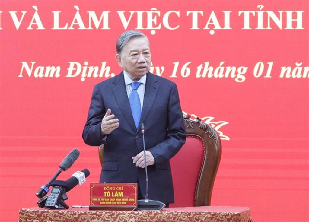 | Le secrétaire général du Parti, Tô Lâm, s'exprime lors d'une séance de travail avec les autorités de la province de Nam Dinh, le 16 janvier. |
