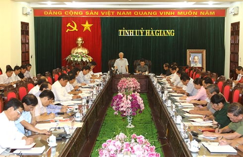 | Le secrétaire général du Parti communiste du Vietnam Nguyên Phu Trong a eu une séance de travail le 27 août, avec les autorités de la province de Hà Giang (Nord). |