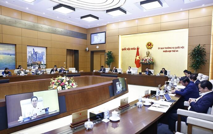 | Le président de l’Assemblée nationale Trân Thanh Mân s’exprime lors de la 43e réunion du Comité permanent de l’Assemblée nationale. |