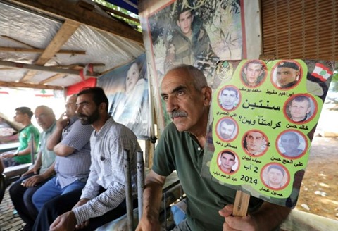 | Parents et proches de soldats libanais pris en otages par des jihadistes en 2014 réunis à Beyrouth le 27 août. |