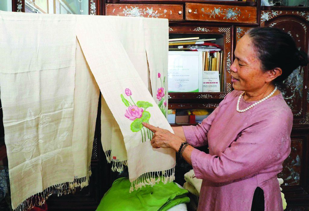Aujourd’hui, la culture de lotus dans les districts suburbains de Hanoï fournit des matières premières de haute qualité à l’industrie textile, ainsi qu’à la production de parfums et d’amidon. Notamment, la soie de lotus, unique en son genre, fabriquée par l’artisane Phan Thi Thuân dans la commune de Phùng Xa, district de My Duc, est particulièrement remarquable. Les écharpes en soie de Thuân, un produit OCOP potentiel 5 étoiles, sont offertes par le Bureau du gouvernement en tant que cadeaux diplomatiques aux dignitaires étrangers.
