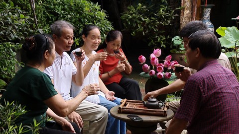 Assis au milieu du jardin de lotus impérial, Ta Hông Diêp et sa femme ont soigneusement et méticuleusement préparé le thé au lotus (trà sen en vietnamien). Les fleurs sont cueillies à la main par M. Diêp et sont déposées dans du thé originaire de Thai Nguyên avant 07h00 du matin. Le couple utilise des feuilles molles et flétries qu’ils enveloppent et placent dans un vase pendant toute une journée, afin de laisser le thé absorber le parfum du lotus. Après cela, ils invitent des amis à déguster le thé au lotus et partagent leurs secrets sur la préparation du trà sen.
