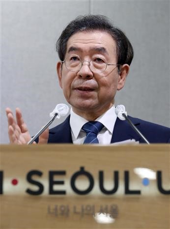 | Park Won-soon, lors d'une conférence de presse dans la capitale sud-coréenne. |