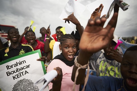 | Des partisans du président malien sortant Ibrahim Boubacar Keita, lors du dernier meeting électoral avant le 2e tour de la présidentielle, le 10 août 2018 à Bamako. |